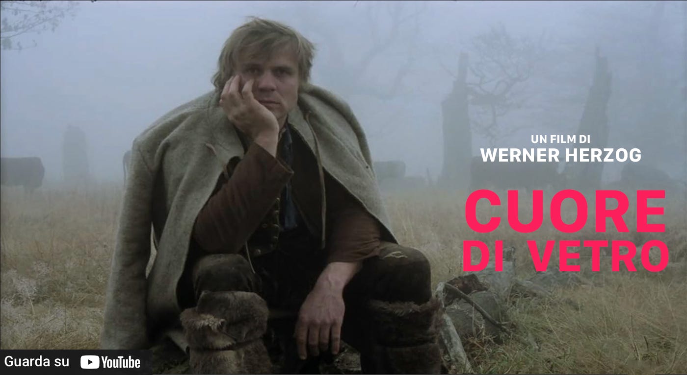Se la coralità è uno dei punti di forza di “Andrej Rublev”, in “Cuore di vetro” di Werner Herzog essa raggiunge una dimensione totale, è la storia di un’intera comunità delle Alpi bavaresi del Settecento pre-industriale.